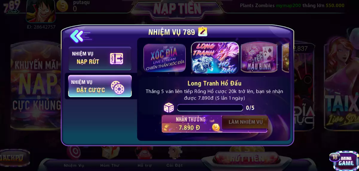 Danh mục trò chơi của 789Club được thiết kế nhằm đáp ứng sở thích đa dạng của người chơi Việt Nam. Từ những game bài truyền thống quen thuộc đến các trò chơi may rủi hiện đại, mỗi thể loại đều có điểm thu hút riêng biệt để tạo nên sức hút khó cưỡng.