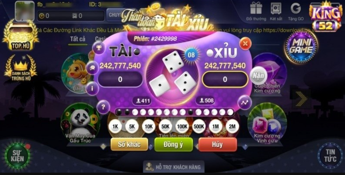 King52 là một cổng game nổi tiếng và phần mềm tool tài xỉu của nó cũng được nhiều game thủ yêu thích. Công cụ này giúp người chơi phân tích các kết quả tài xỉu một cách chi tiết và chính xác hơn nhờ vào các thuật toán phân tích chuyên sâu. Bên cạnh đó, King52 cũng cung cấp cho người chơi các chiến thuật chơi phù hợp với các kết quả mà tool dự đoán, tăng khả năng chiến thắng cho người dùng.